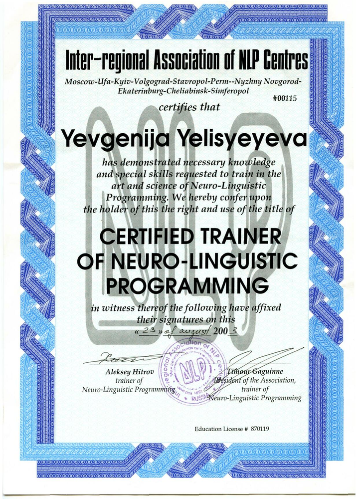 Сертифицированный Тренер НЛП, Мастер-Практик НЛП