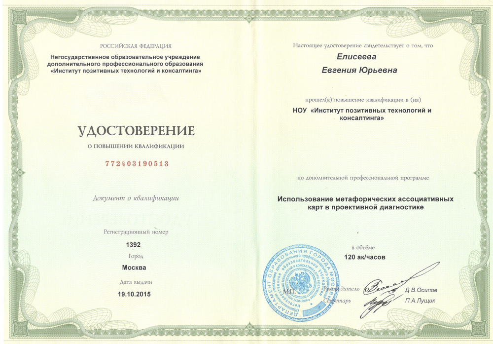 Евгения Елисеева - автор семи колод метафорических ассоциативных карт, более 20 тренинговых и обучающих программ, включая Тренинг Тренеров.