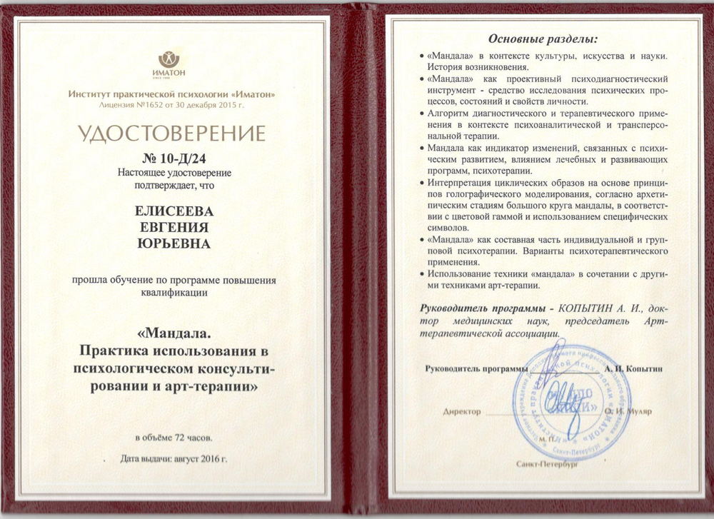 Возможно, стоимость курса на первый взгляд может показаться высокой. Это связано с тем, что в программе курса собрано всё самое интересное-вкусное-полезное: 20 обучающих часов, 35 различных инструментов работы с мандалой, в том числе 9 глубинных практик, шесть базовых способов создания, три методики анализа, семь направлений арт-терапии и многое другое.