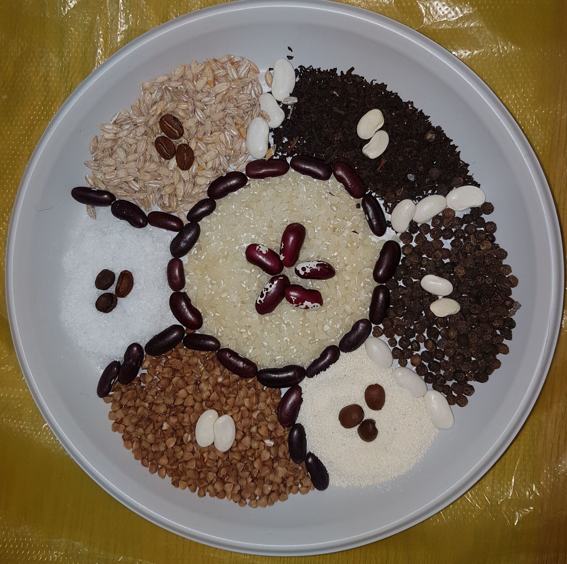 Создавая мандалу из сыпучих продуктов и используя контраст цвета, обретала спокойное, уравновешенное состояние, желаемое «раскладывалось по полочкам».