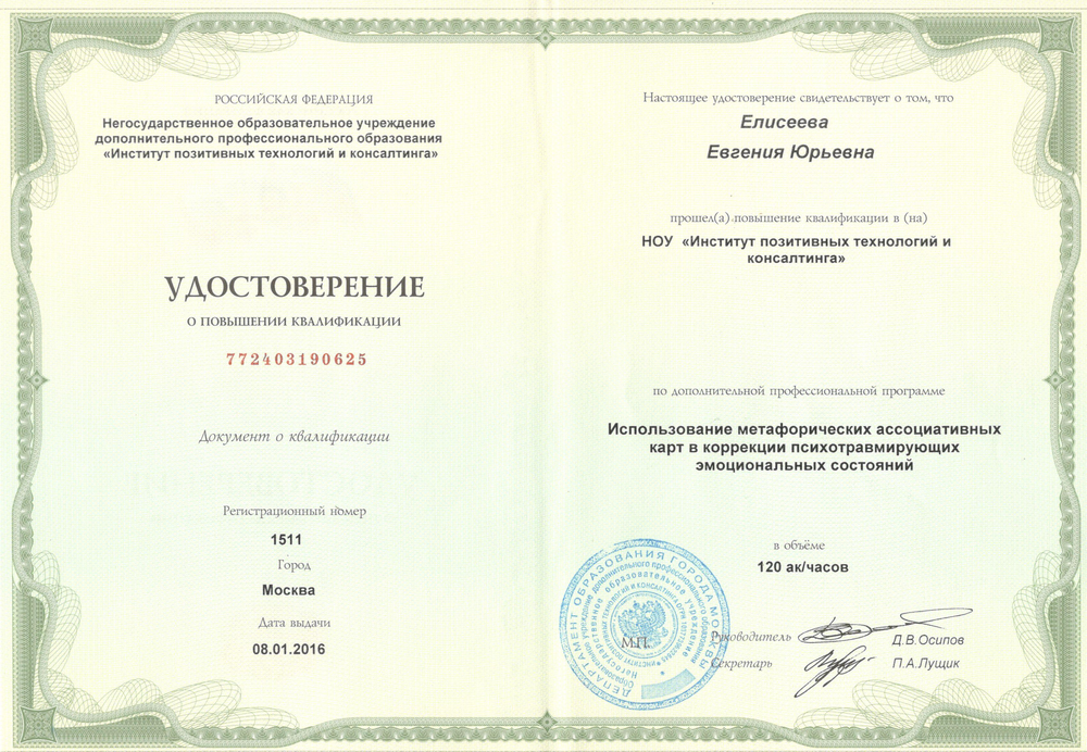 Евгения Елисеева - автор семи колод метафорических ассоциативных карт, более 20 тренинговых и обучающих программ, включая Тренинг Тренеров.